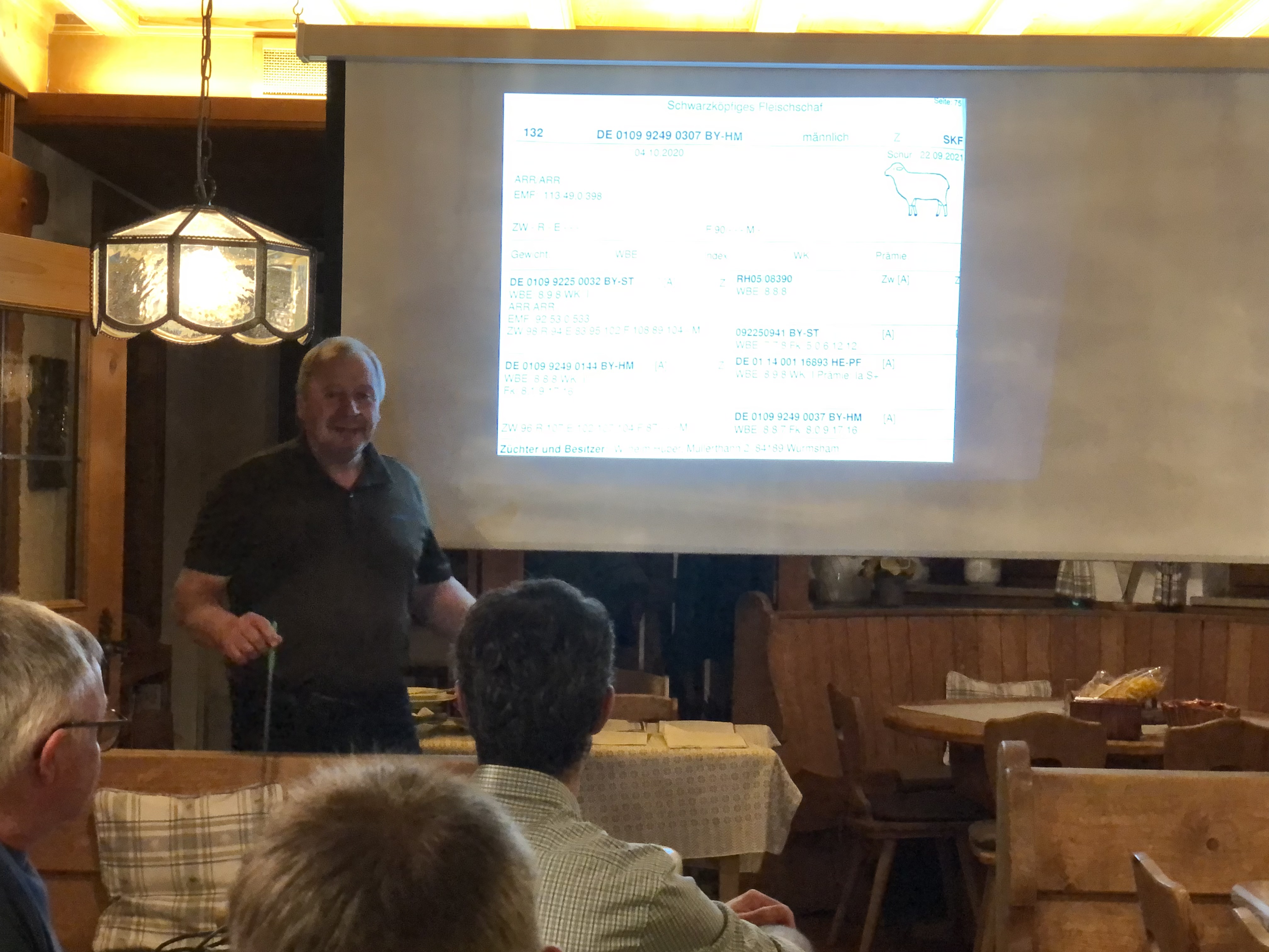 Abschließend bedankte sich Numberger für die rege Teilnahme und übergab Willi Huber, erfolgreicher Schwarzkopfzüchter, das Wort, welcher den Teilnehmern einen Einblick in das Auktionsgeschehen gab. Hierfür erklärte Huber die Inhalte eines Bewertungskataloges, welche Merkmale bei Schafböcken relevant sind und untermauerte dies bildlich. Somit ist es nun auch als Leihe/Neueinsteiger möglich, das richtige Zuchttier für seinen Betrieb zu finden. Uli Wagenstetter jun., 2. Vorstand, lud im Anschluss ein, dass jeder, der über ein passendes Thema gut informiert ist bzw. eine Fachperson kennt herzlich eingeladen ist, in diesem Rahmen zu referieren.