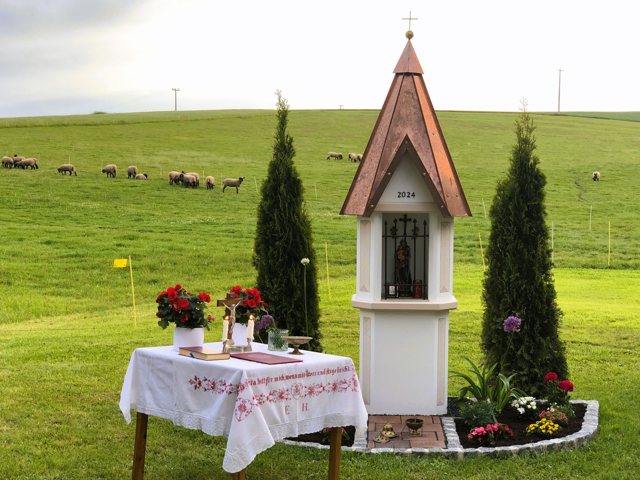 Am Freitag, 23.05.2025 durfte der Schafhalterverein Mühldorf bei gutem Wetter im Rahmen der Einweihung eines von Fam. Huber erstellen Marterls in Müllerthann (Gemeinde Wurmsham), die alljährliche Maiandacht abhalten.