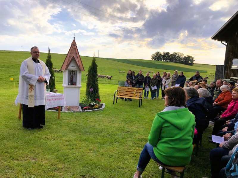 Zelebriert wurde die Einweihung und Maiandacht durch unseren Pfarrer, Paul Jansen, der wieder den weiten Weg aus Aschau im Chiemgau hierfür auf sich genommen hat.