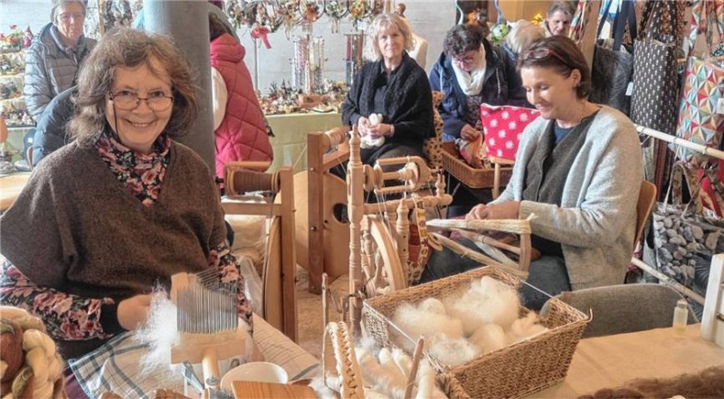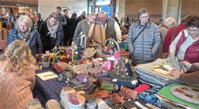 Ebenso die Verarbeitung von Wolle und anderen Garnen zu Kleidungsstücken, Accessoires, Wohntextilien, Kuscheltierchen und vielem mehr. Diese Leidenschaft verbindet die Mitglieder, und sie freuen sich sehr darüber, mit dem Wollmarkt in Oberbergkirchen einen Ort geschaffen zu haben, an dem man sich treffen, austauschen, Zeit miteinander verbringen und nicht zuletzt Energie tanken kann. Ein breites Angebot hochwertigster Wollen und Wollwaren – vom Merino- bis zum Milchschaf und von Alpakas bis zu Angoraziegen – wartete auf die Gäste. Es reichte von Heil- und Filzwolle über natürliche oder pflanzengefärbte Wollgarne bis hin zu Strick-, Web-, Leinen- oder Lodenkleidung. Es gab Wolldecken, Sitzkissen, Teppiche und Dekorationsartikel, Filzhüte, Schaffelle, traditionellen Trachtenstrick, Walk- und Funktionskleidung. Auch für jegliche Art von Dekoartikeln – etwa Getöpfertes, Nudeln, Nüsse und vieles mehr, selbstverständlich aus der Region, sowie Kränze und Gestecke – war ein breites Spektrum vorhanden.